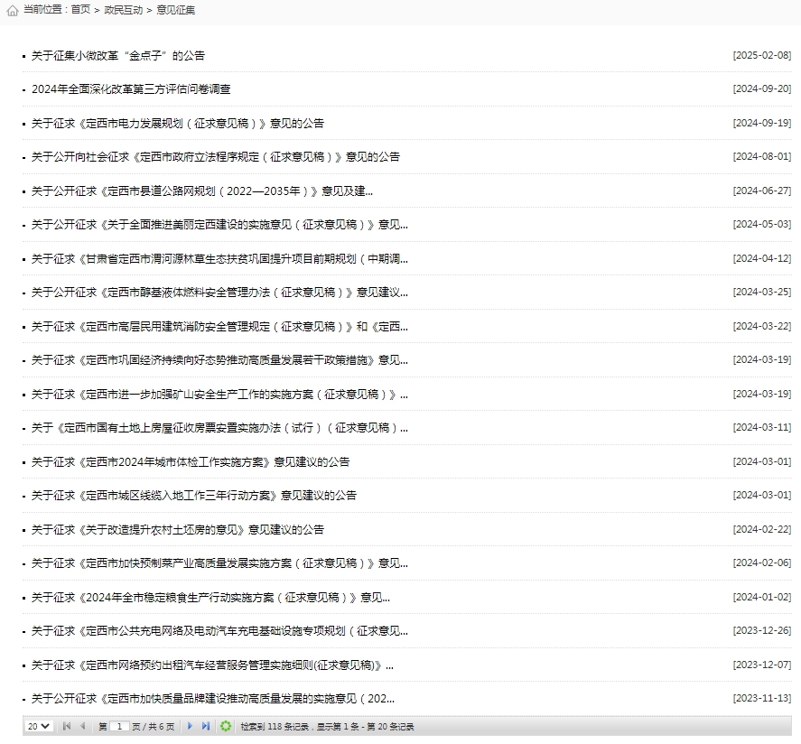 (二)依申請(qǐng)公開(kāi)。2024年,共受理政府信息公開(kāi)申請(qǐng)115件,申請(qǐng)數(shù)量較去年增加248%,均在法定期限內(nèi)予以答復(fù),行政復(fù)議1件。 (三)政府信息管理。優(yōu)化政府信息分類(lèi)整合,聚焦法定主動(dòng)公開(kāi)內(nèi)容,動(dòng)態(tài)調(diào)整政府信息公開(kāi)欄目,定期開(kāi)展檢查和整改,增強(qiáng)信息發(fā)布的時(shí)效性和規(guī)范性。建立健全政務(wù)信息發(fā)布“三審三校”機(jī)制,對(duì)所有信息落實(shí)先審后發(fā)、發(fā)后讀網(wǎng),提升信息權(quán)威性和準(zhǔn)確性。 (四)政府信息公開(kāi)平臺(tái)建設(shè)。做好政府網(wǎng)站集約化平臺(tái)運(yùn)維工作,完成市政府門(mén)戶(hù)網(wǎng)站適老化和無(wú)障礙閱讀改造。積極推進(jìn)政府公報(bào)數(shù)字化轉(zhuǎn)型,切實(shí)發(fā)揮政府公報(bào)法定載體和標(biāo)準(zhǔn)文本的關(guān)鍵作用。加強(qiáng)政府網(wǎng)站和政務(wù)新媒體日常管理和常態(tài)化監(jiān)管,加大平臺(tái)檢測(cè)頻率和力度,及時(shí)排查和整改存在問(wèn)題。